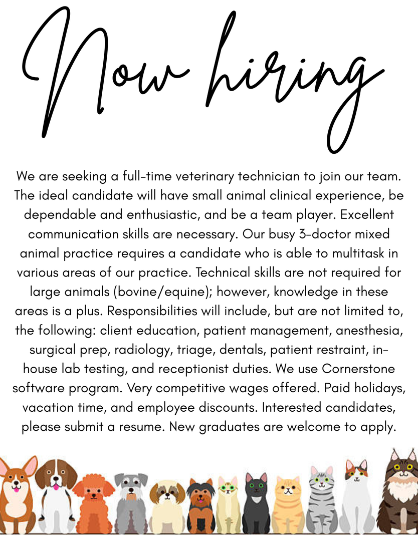 - We have a new small animal doctor, Dr. Alyce Hines. See our "about us" page to see more information.